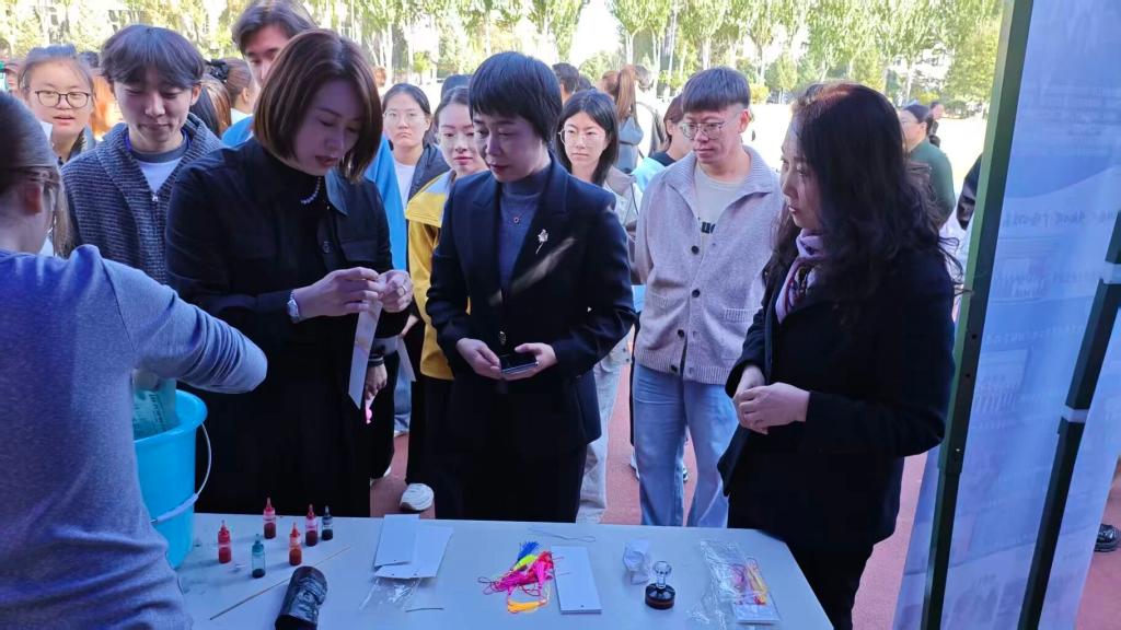 期间,校党委副书记刘凤影来到现场,与师生亲切交流询问,参与体验漆扇点染与树叶拼贴的创作过程,现场气氛轻松融洽。