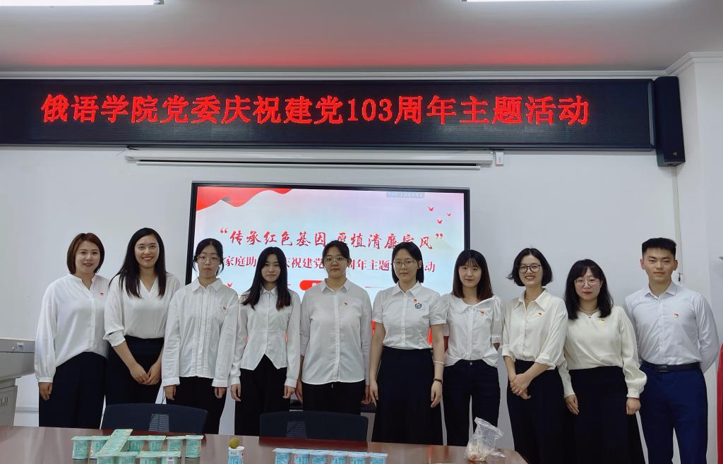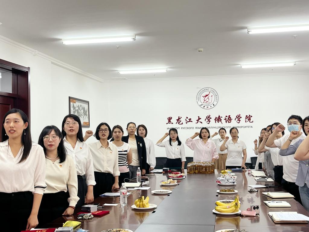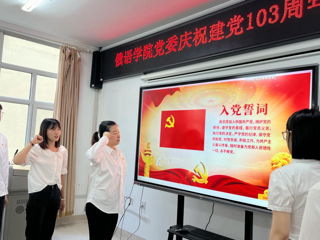 俄语学院党委书记黄东晶总结讲话,她向受表彰的先进个人和集体表示祝贺,向新加入党组织的青年党员送上祝福。她指出,全体党员干部要以庆祝建党103周年为契机,坚持不懈用习近平新时代中国特色社会主义思想凝心铸魂,深刻把握伟大建党精神,以先进典型为榜样,以优秀党员为标杆,弘扬先进、崇尚先进、学习先进,以更加饱满的精神状态、更加务实的工作作风,不断推动学院各项事业健康、持续和高质量发展,努力为服务龙江高质量发展、可持续振兴作出新的更大的贡献。(俄语学院供稿)