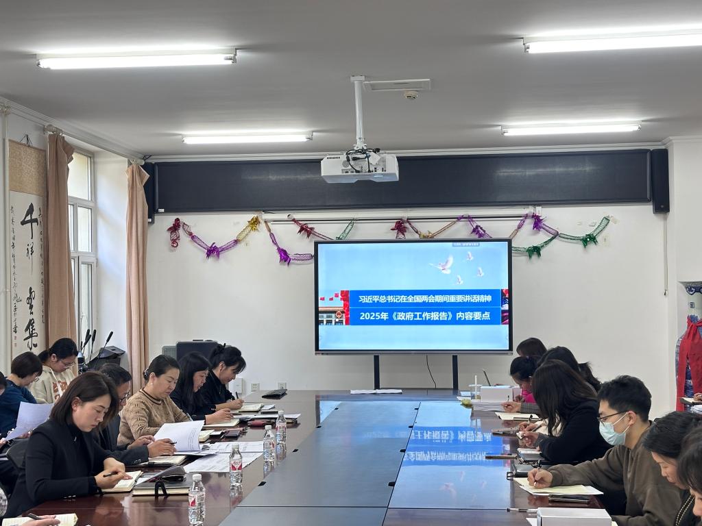 会前,俄语学院全体教师共同收看了“2025年全国两会精神解读”讲座。(俄语学院供稿)