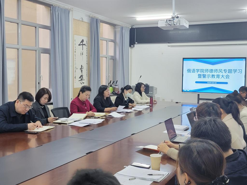 为进一步加强教师队伍建设,俄语学院于10月15日召开了师德师风专题学习暨警示教育大会。俄语学院全体教职工参加会议。