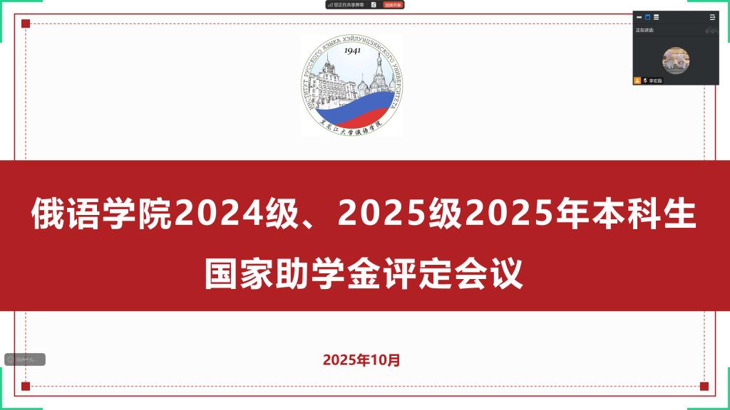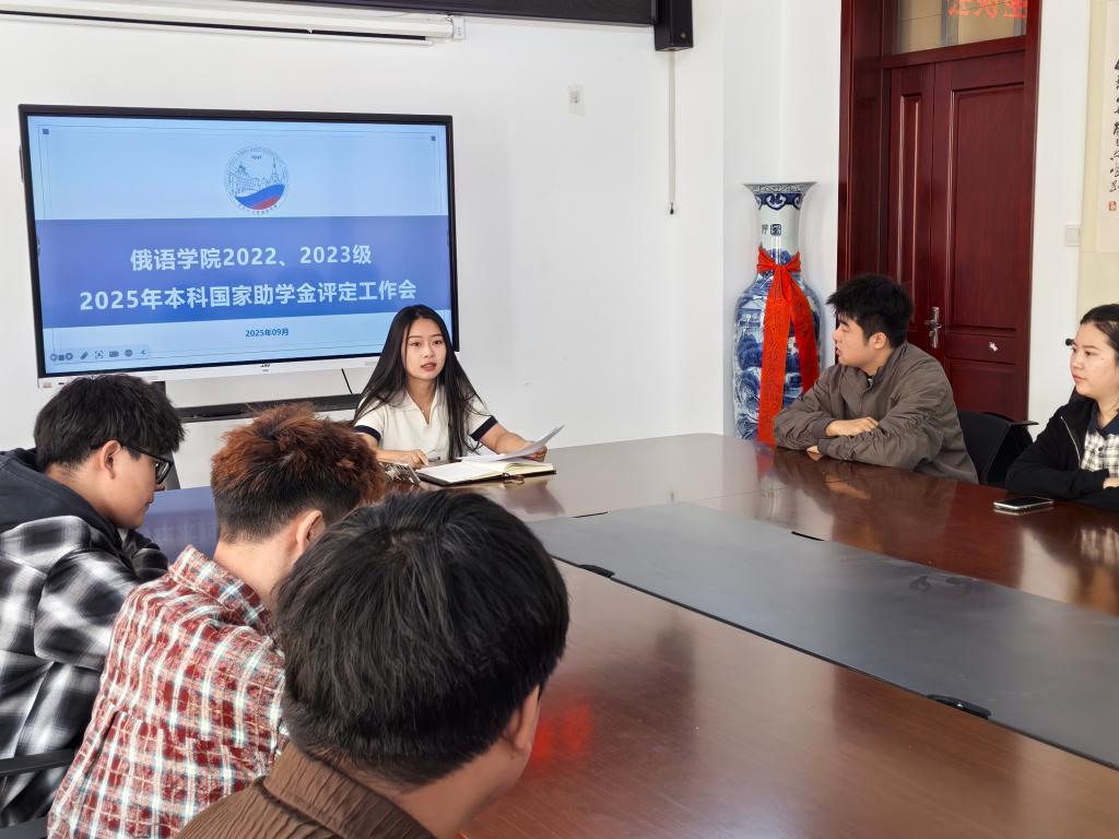 根据《黑龙江大学本科生国家助学金评选办法》及《学生工作部:关于评定2025年国家助学金的通知》的要求,俄语学院各年级分别召开2025年国家助学金评定大会,会议由各年级辅导员主持,所有家庭经济困难学生参加。