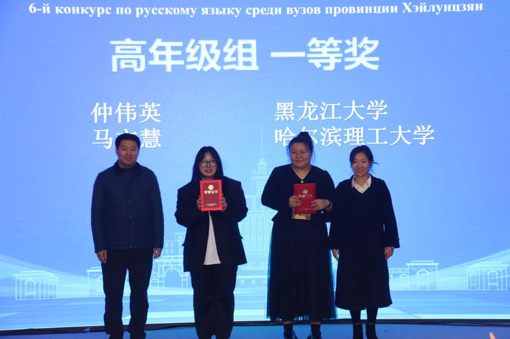 俄语学院在第六届黑龙江省高校俄语大赛中荣获最佳组织奖、特殊贡献奖;周万博获高年级组特等奖;仲伟英获高年级组一等奖;杨双龙获低年级组特等奖。