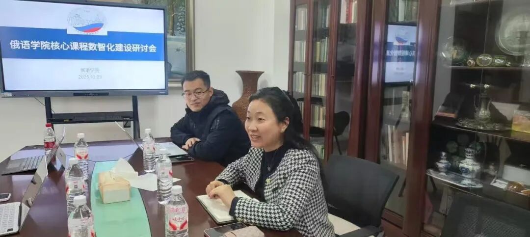为深入推进俄语专业核心课程的数智化转型与高质量发展,俄语学院于12月23日在主楼A417组织召开了核心课程数智化建设专题研讨会。徐美玲副院长、何洋洋主任、信息管理学院张涛教授、超星公司项目经理张媛园等共同参加了此次会议。
