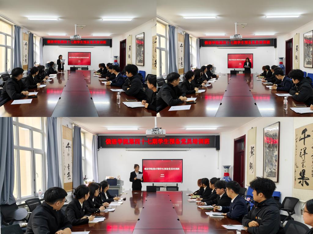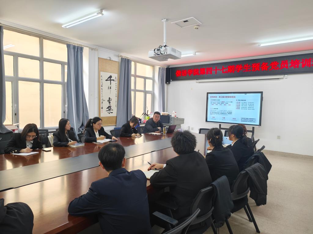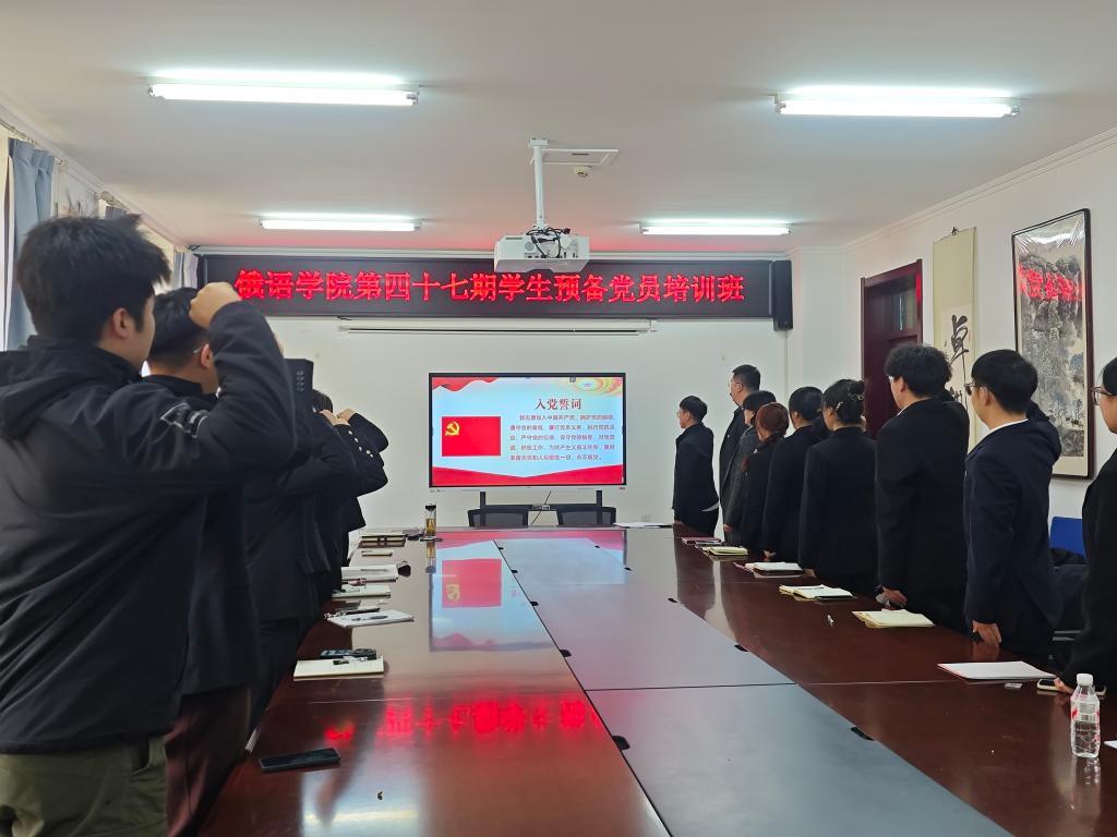 为切实提升预备党员政治素养与党性修养,推动党员教育走深走实,俄语学院于4月8日举办了第47期预备党员培训班。本次培训由学院党委副书记沈中辉、团委书记李宏磊、团委副书记金鑫主讲。培训内容丰富系统,形式多样新颖,涵盖了学院线下授课、入党宣誓、党课进社区以及学生自主交流研讨等多个环节。