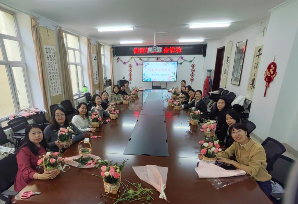 为庆祝“三八”国际劳动妇女节,3月7日下午,俄语学院工会在主楼A418举办“魅力插花·我最美”工会活动。本次活动由俄语学院党委副书记、工会主席张爽主持,学院女教职工在花香与笑语中共赴春日之约,以花为媒传递节日祝福,展现新时代女性风采。